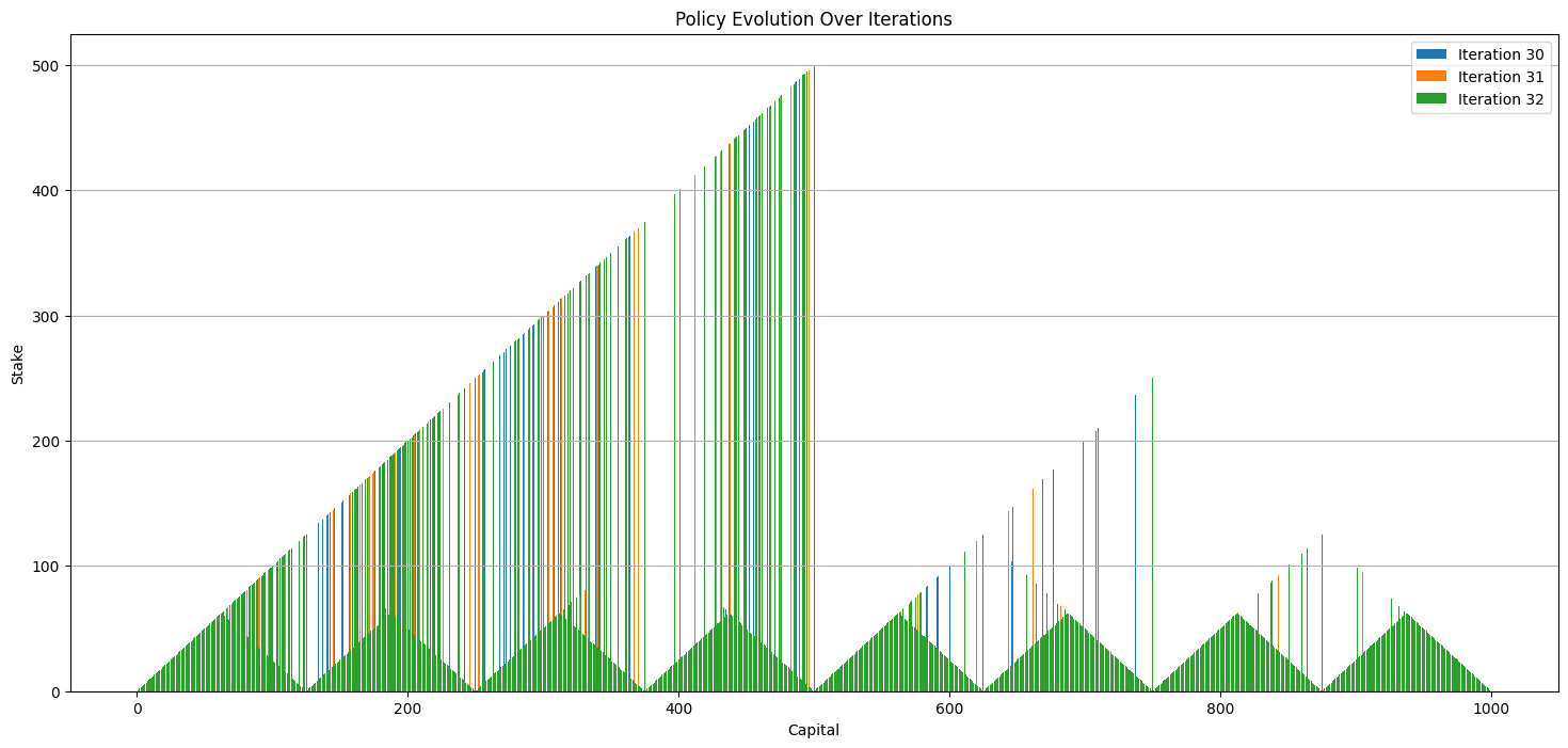 In particular, for capital of 50 it bets it all on one flip, but for capital of 51 it does